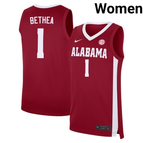 • Women's Jalil Bethea Crimson Bama #1 College Basketball University Jerseys