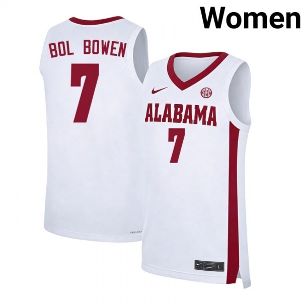 • Women's Taylor Bol Bowen White Roll Tide #7 College Basketball NCAA Jersey