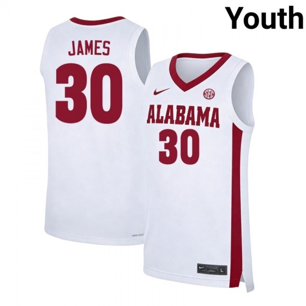 • Youth Klark James White The Tide #30 College Basketball 2025-26 Jersey